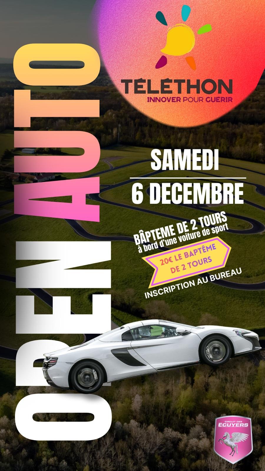 VENEZ PILOTER VOTRE VOITURE AU PROFIT DU TÉLÉTHON ! (Véhicules utilitaires non autorisés)